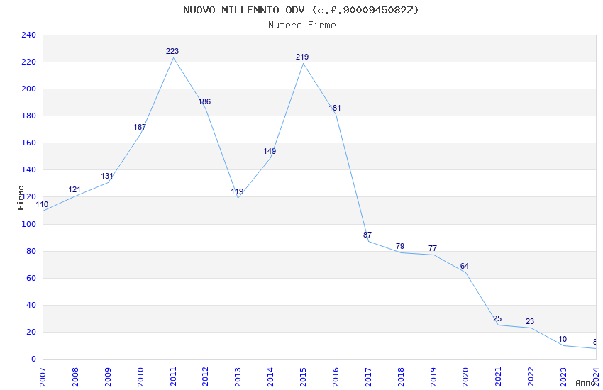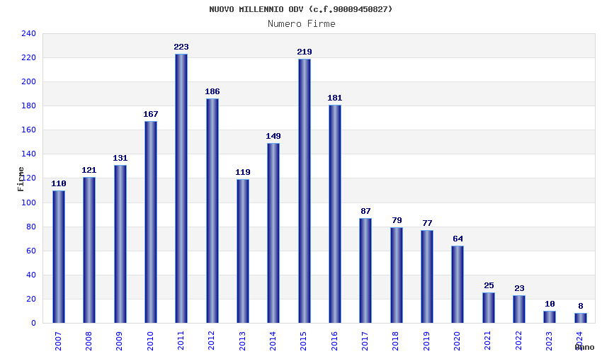 | Anno | Firme | Importi | Media | Naz. | Reg. | Prov. | Comu. |
