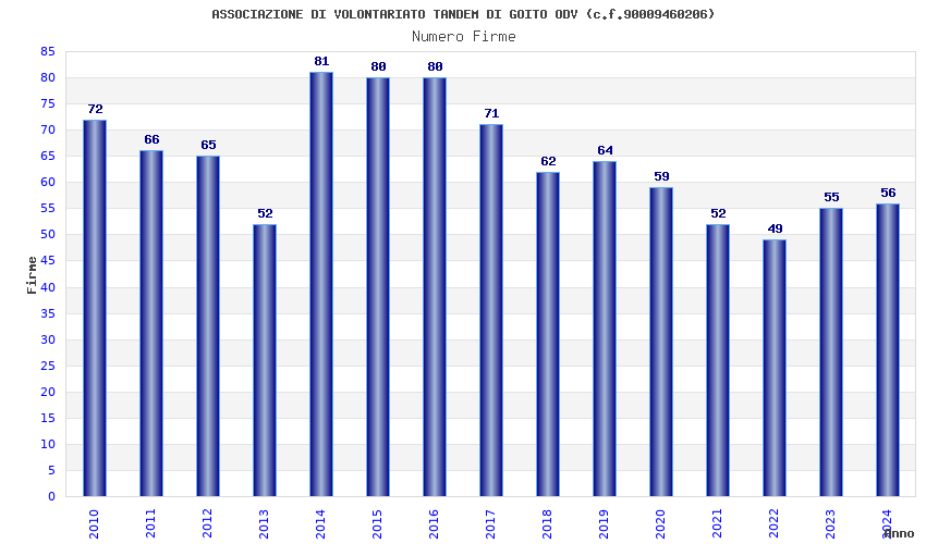 | 2010 | 72 | 759,27 | 10,55 | 26.493 | 5.860 | 251 | 3 |