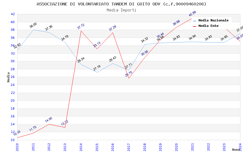 | Anno | Firme | Importi | Media | Naz. | Reg. | Prov. | Comu. |