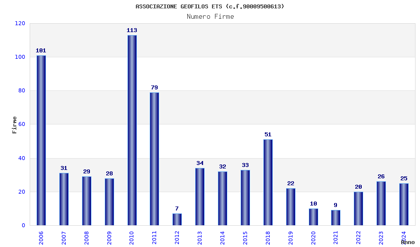 | Anno | Firme | Importi | Media | Naz. | Reg. | Prov. | Comu. |