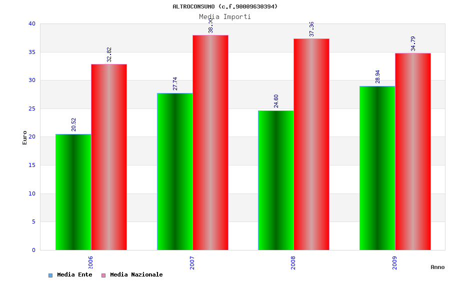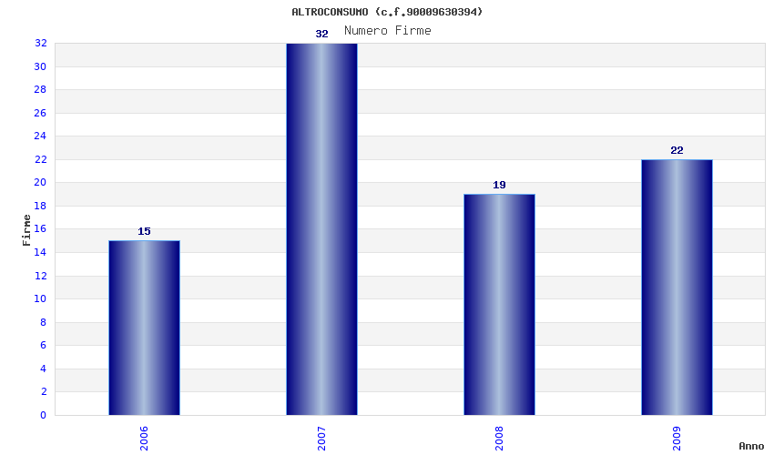 | Anno | Firme | Importi | Media | Naz. | Reg. | Prov. | Comu. |