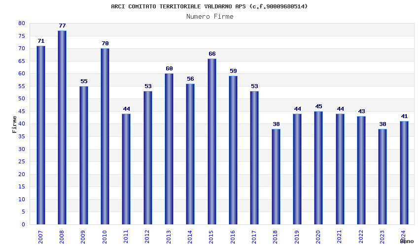 Anno Firme Importi Media Naz. Reg. Prov. Comu.
