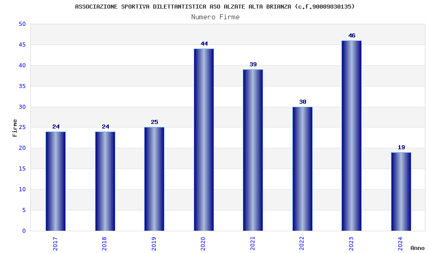 | Anno | Firme | Importi | Media | Naz. | Reg. | Prov. | Comu. |