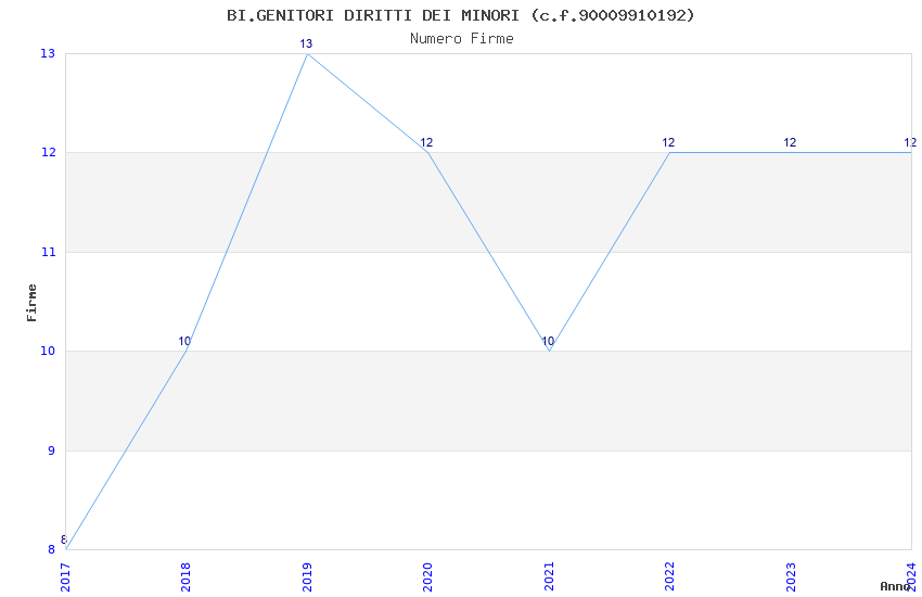 | Anno | Firme | Importi | Media | Naz. | Reg. | Prov. | Comu. |