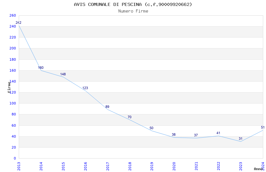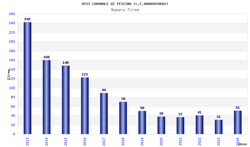 Anno Firme Importi Media Naz. Reg. Prov. Comu.