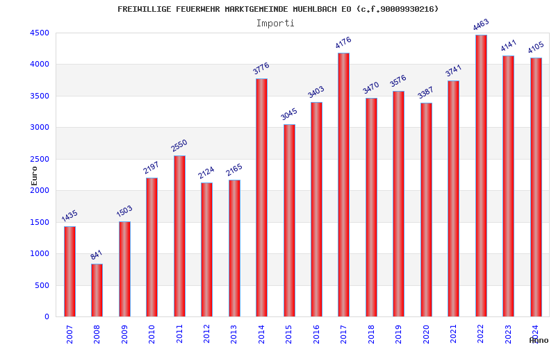 | Anno | Firme | Importi | Media | Naz. | Reg. | Prov. | Comu. |