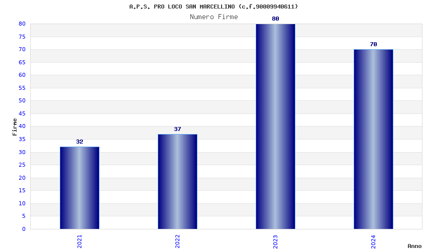 | Anno | Firme | Importi | Media | Naz. | Reg. | Prov. | Comu. |