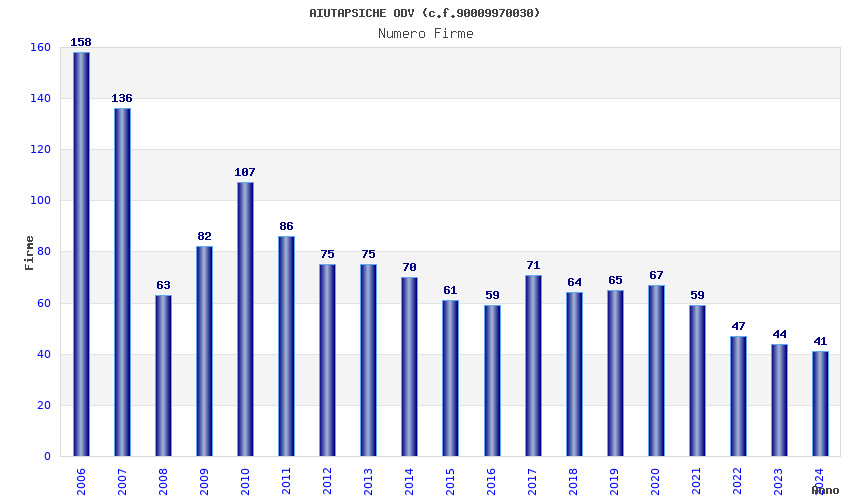 | Anno | Firme | Importi | Media | Naz. | Reg. | Prov. | Comu. |
