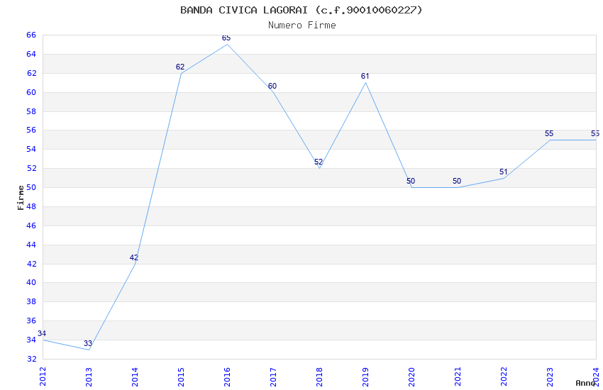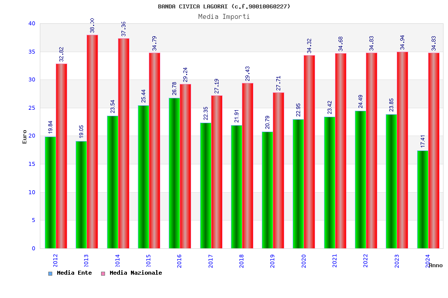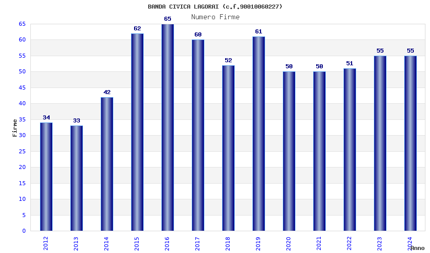 | Anno | Firme | Importi | Media | Naz. | Reg. | Prov. | Comu. |