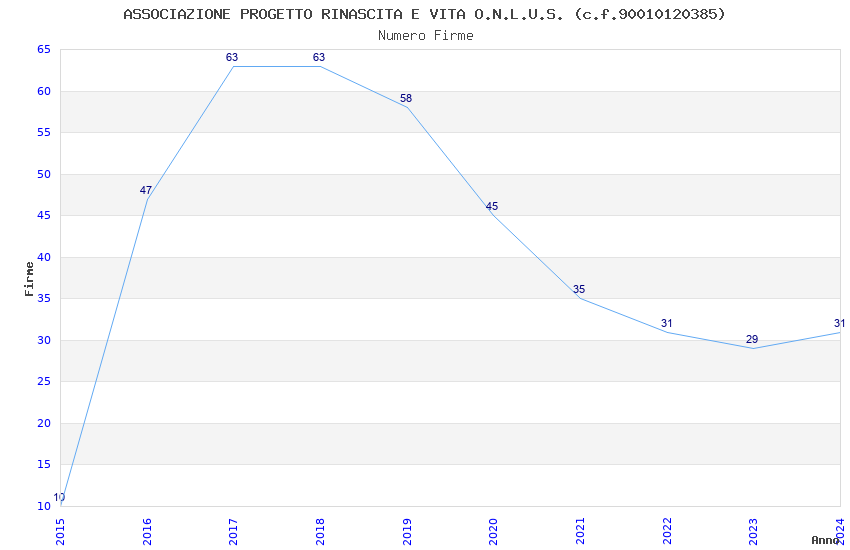 Anno Firme Importi Media Naz. Reg. Prov. Comu.