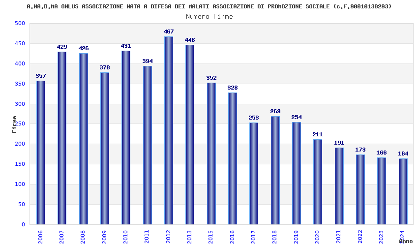 | Anno | Firme | Importi | Media | Naz. | Reg. | Prov. | Comu. |