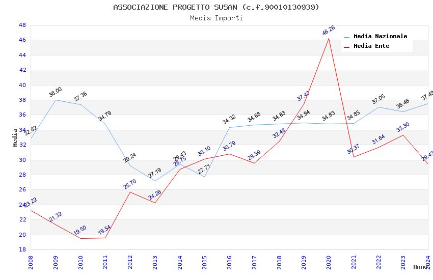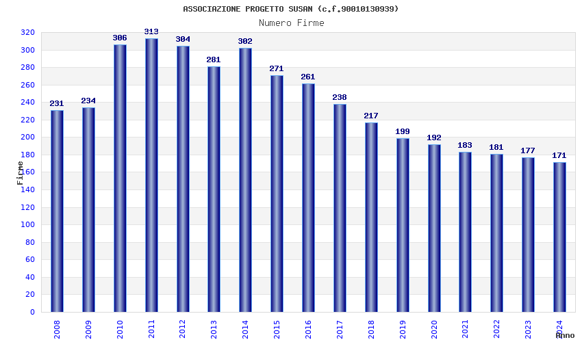 | Anno | Firme | Importi | Media | Naz. | Reg. | Prov. | Comu. |