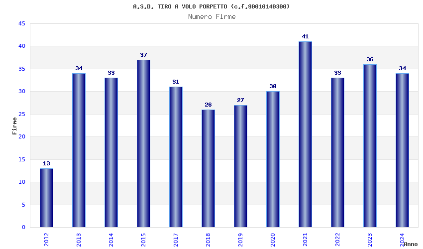 | Anno | Firme | Importi | Media | Naz. | Reg. | Prov. | Comu. |