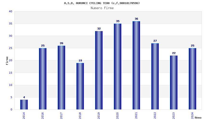 | Anno | Firme | Importi | Media | Naz. | Reg. | Prov. | Comu. |
