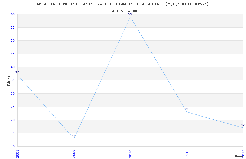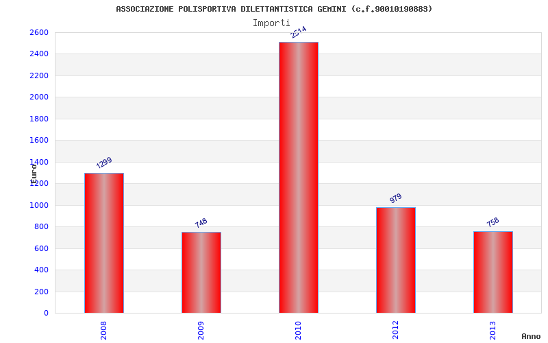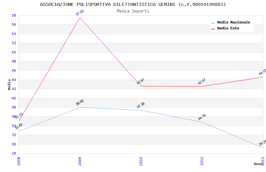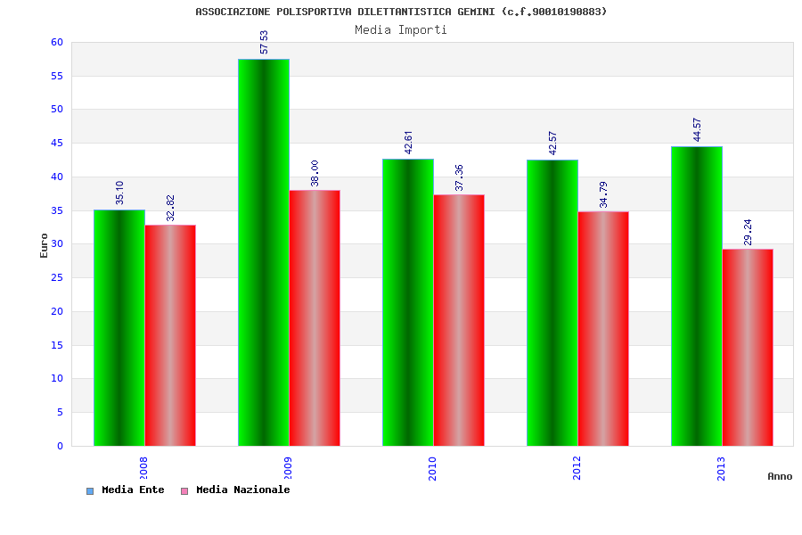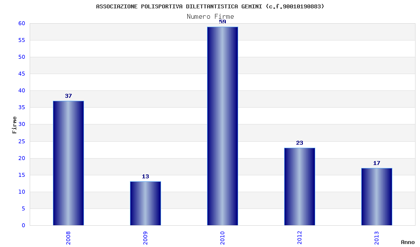 | Anno | Firme | Importi | Media | Naz. | Reg. | Prov. | Comu. |