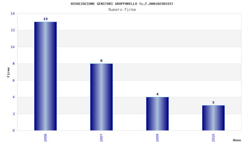 | Anno | Firme | Importi | Media | Naz. | Reg. | Prov. | Comu. |