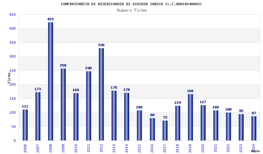 | Anno | Firme | Importi | Media | Naz. | Reg. | Prov. | Comu. |