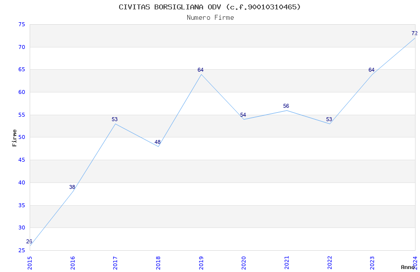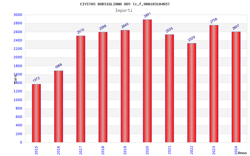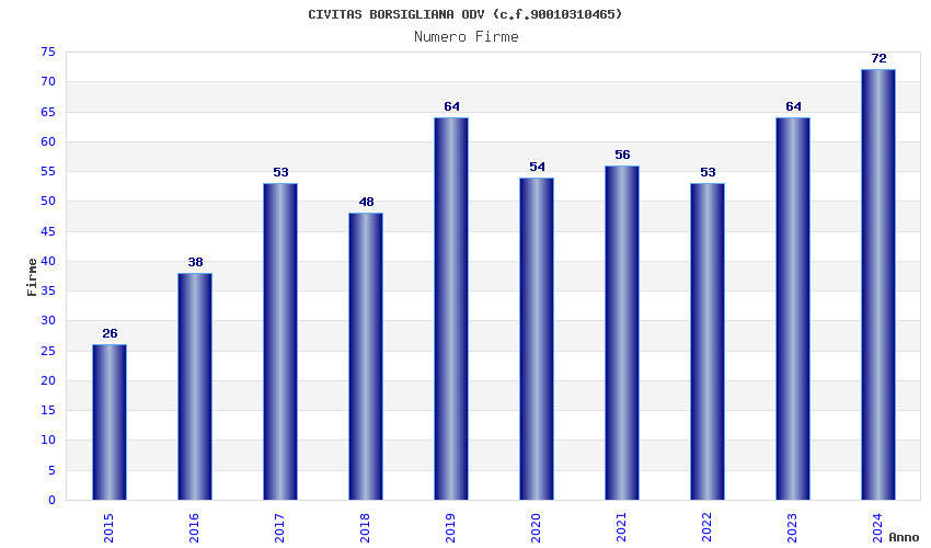 | Anno | Firme | Importi | Media | Naz. | Reg. | Prov. | Comu. |