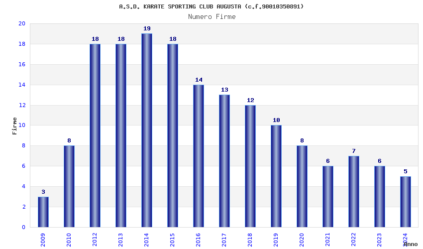| Anno | Firme | Importi | Media | Naz. | Reg. | Prov. | Comu. |