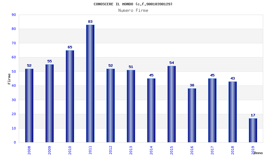 | Anno | Firme | Importi | Media | Naz. | Reg. | Prov. | Comu. |