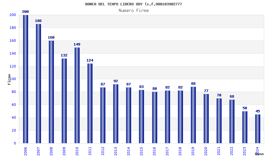 | Anno | Firme | Importi | Media | Naz. | Reg. | Prov. | Comu. |