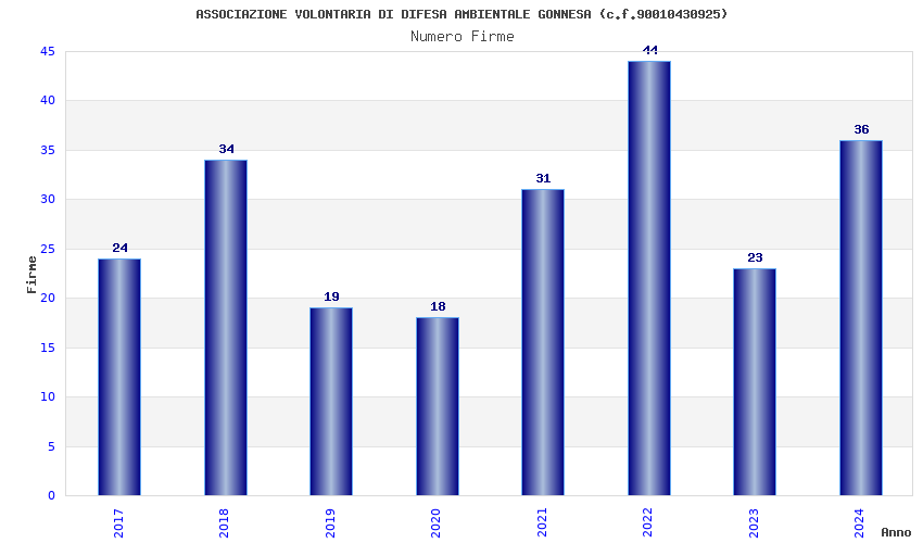 | Anno | Firme | Importi | Media | Naz. | Reg. | Prov. | Comu. |