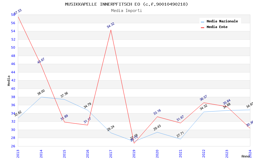 | Anno | Firme | Importi | Media | Naz. | Reg. | Prov. | Comu. |