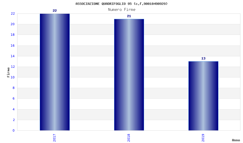 | Anno | Firme | Importi | Media | Naz. | Reg. | Prov. | Comu. |