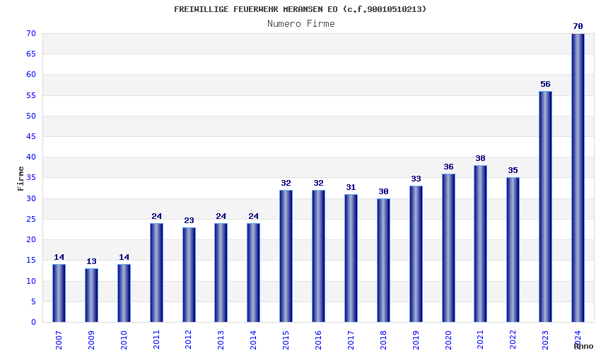 | 2024 | 70 | 2.262,15 | 32,32 | 21.903 | 646 | 351 | 3 |