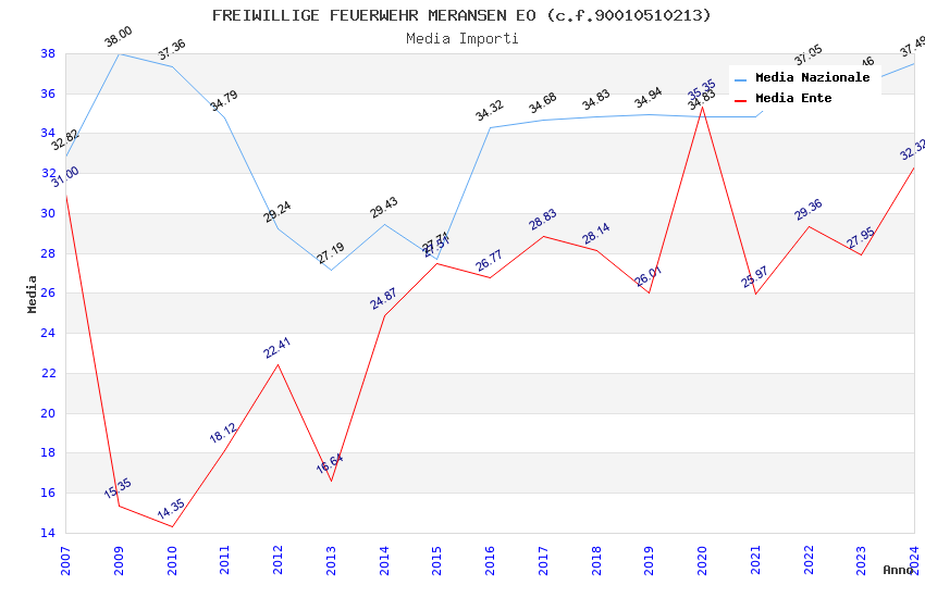 | Anno | Firme | Importi | Media | Naz. | Reg. | Prov. | Comu. |