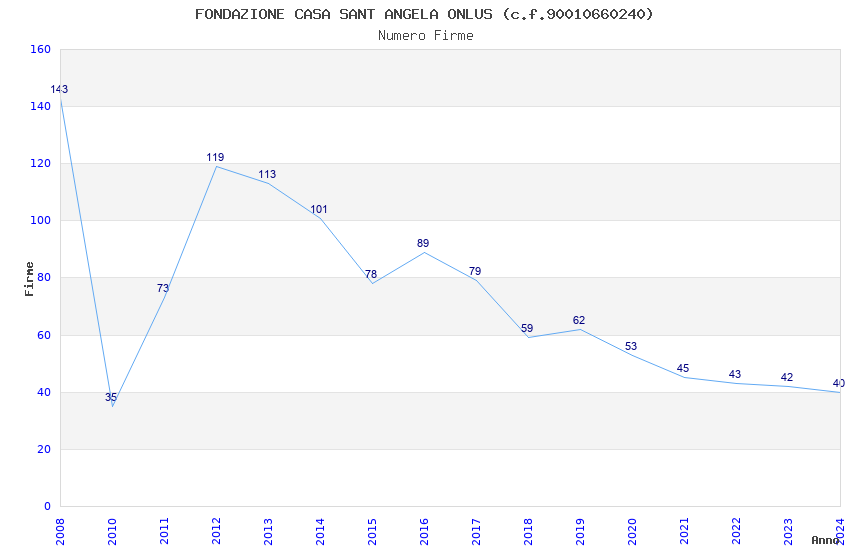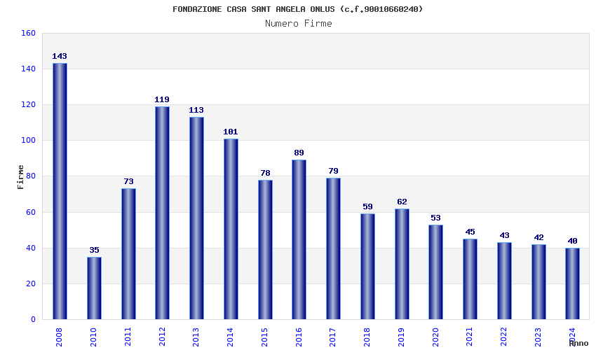| Anno | Firme | Importi | Media | Naz. | Reg. | Prov. | Comu. |