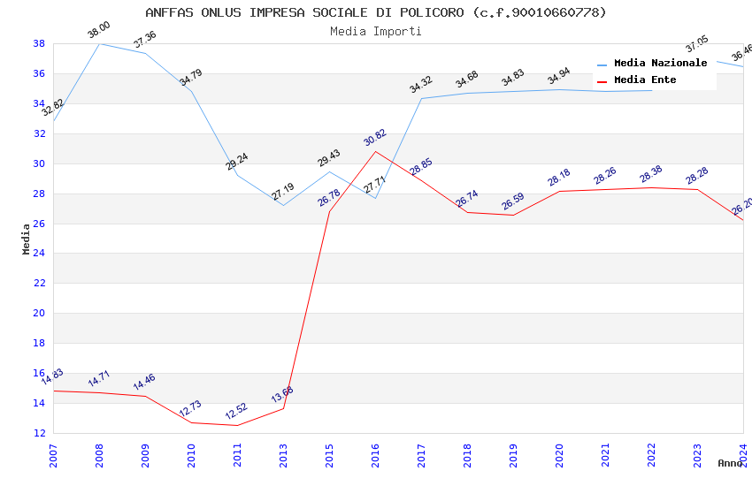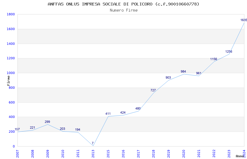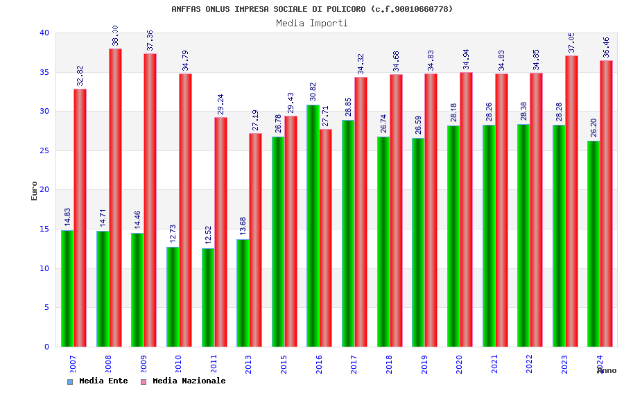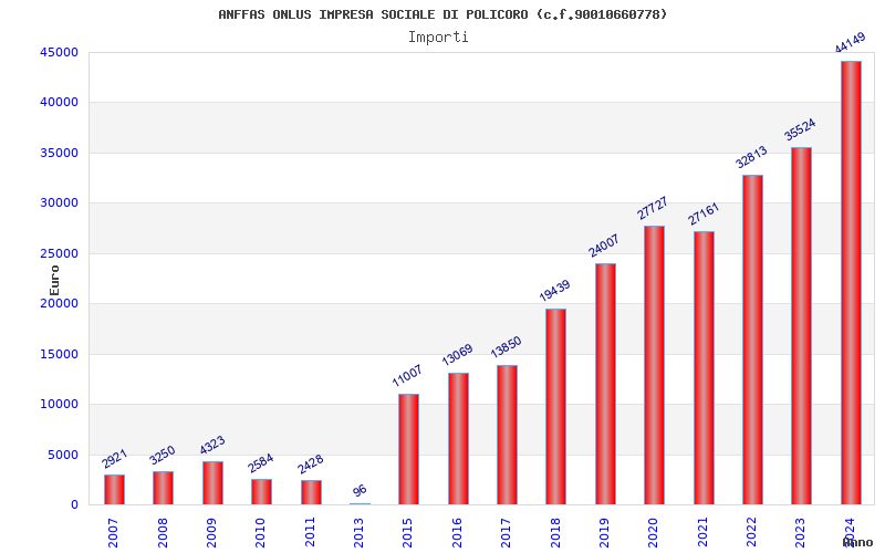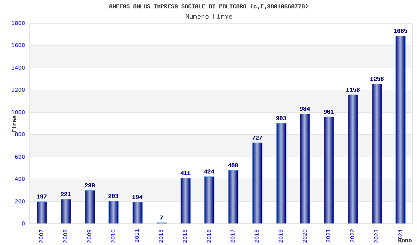 | Anno | Firme | Importi | Media | Naz. | Reg. | Prov. | Comu. |