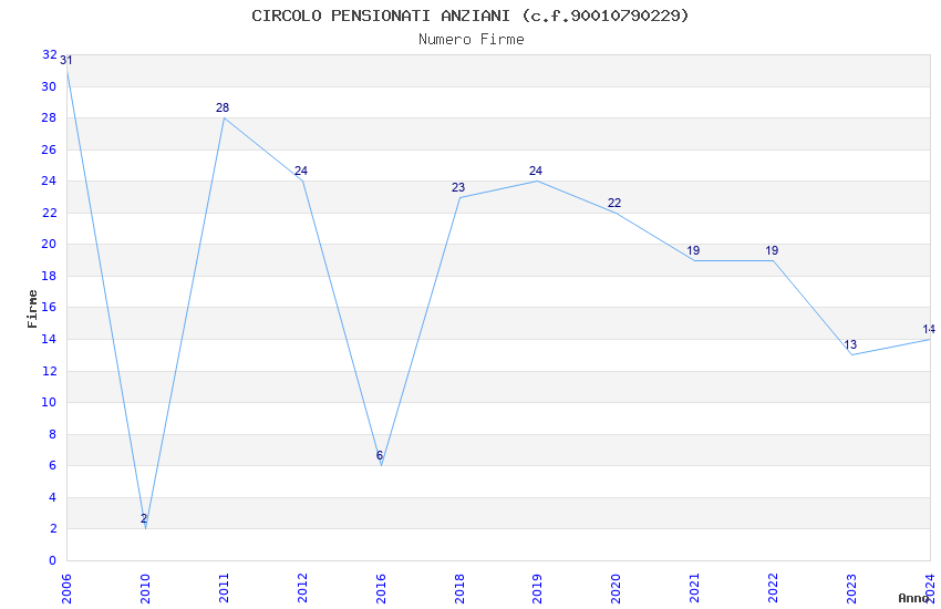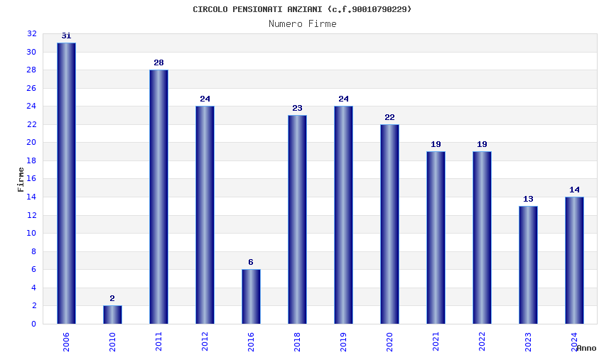 | Anno | Firme | Importi | Media | Naz. | Reg. | Prov. | Comu. |