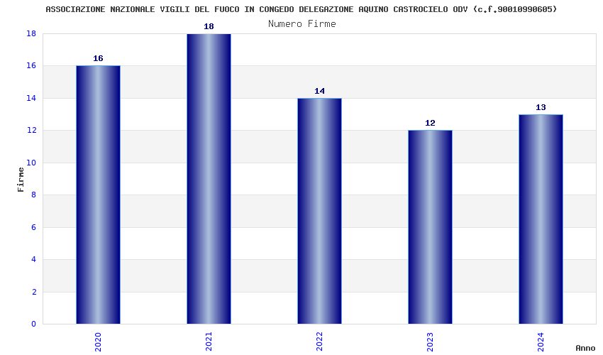 | Anno | Firme | Importi | Media | Naz. | Reg. | Prov. | Comu. |