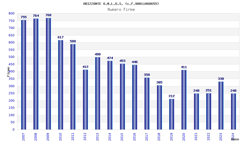 | Anno | Firme | Importi | Media | Naz. | Reg. | Prov. | Comu. |