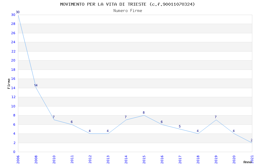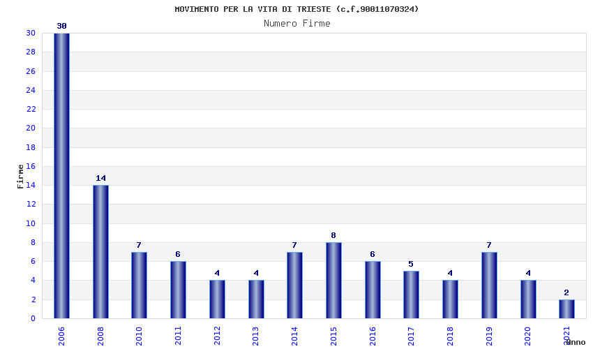 | Anno | Firme | Importi | Media | Naz. | Reg. | Prov. | Comu. |