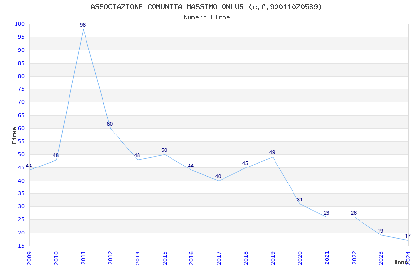 | 2011 | 98 | 1.679,99 | 17,14 | 16.241 | 1.753 | 1.526 | 7 |