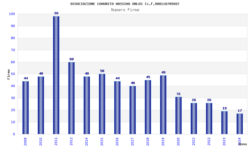 | Anno | Firme | Importi | Media | Naz. | Reg. | Prov. | Comu. |