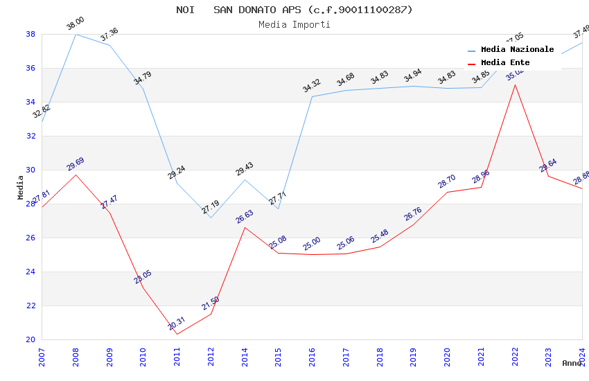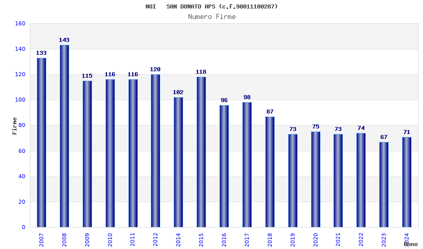 | Anno | Firme | Importi | Media | Naz. | Reg. | Prov. | Comu. |