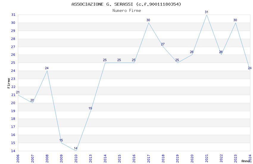 | 2014 | 25 | 1.035,50 | 41,42 | 30.576 | 2.744 | 338 | 13 |