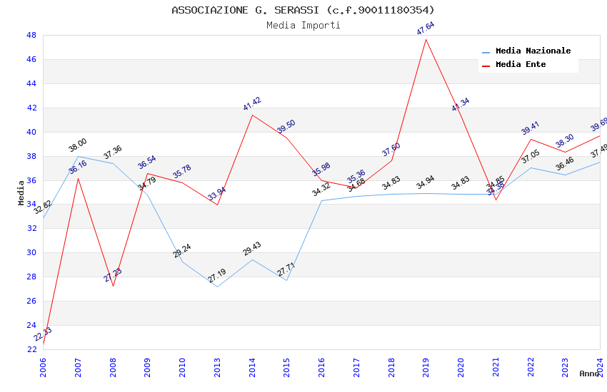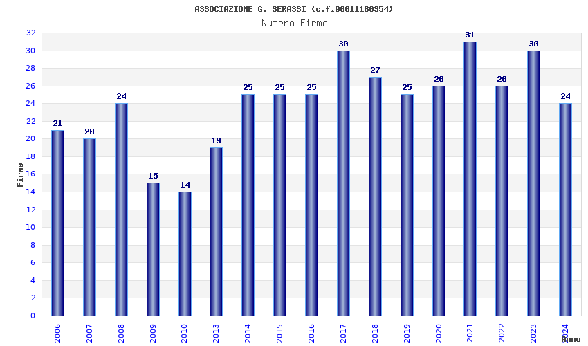 | Anno | Firme | Importi | Media | Naz. | Reg. | Prov. | Comu. |