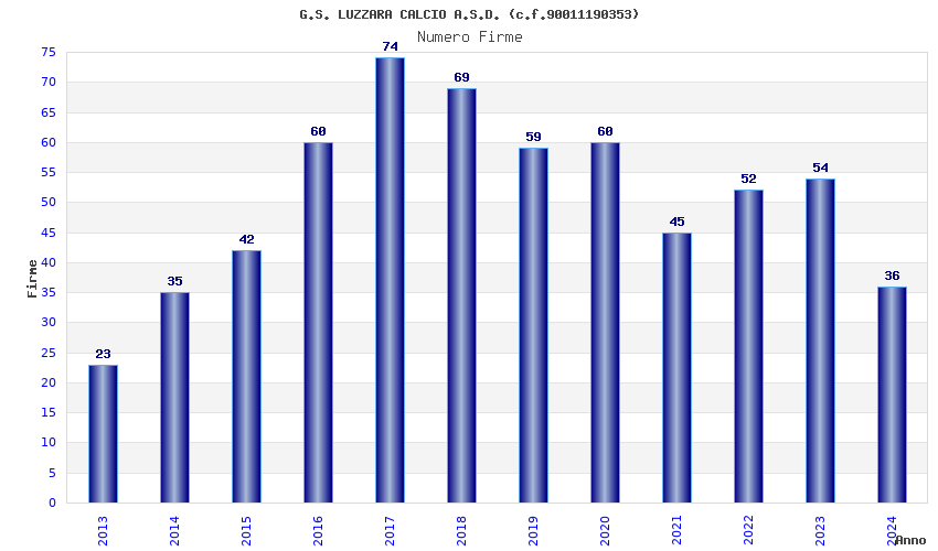 | 2017 | 74 | 2.639,10 | 35,66 | 19.311 | 1.660 | 219 | 2 |