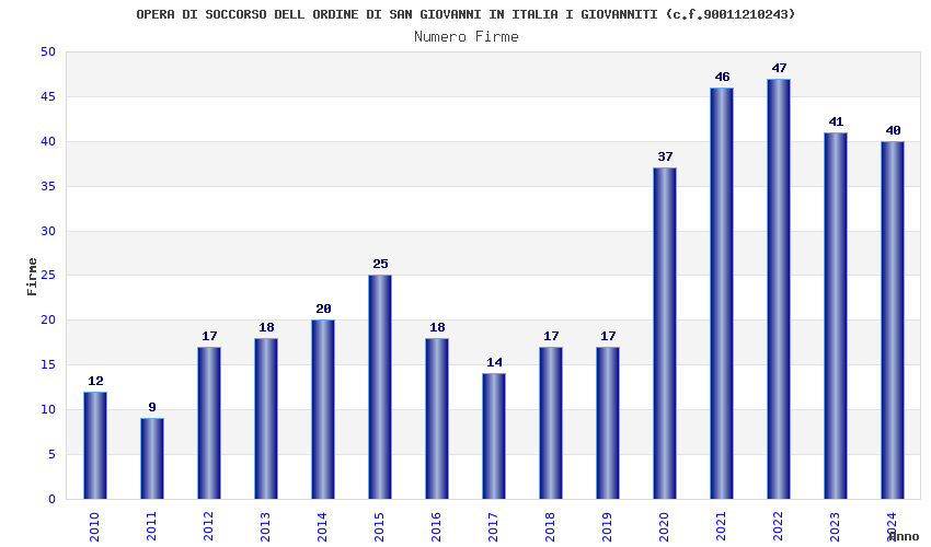 | Anno | Firme | Importi | Media | Naz. | Reg. | Prov. | Comu. |