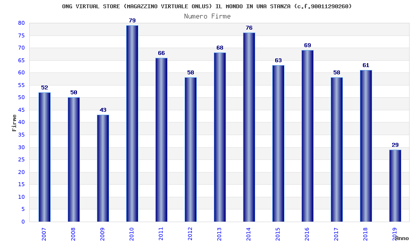 | Anno | Firme | Importi | Media | Naz. | Reg. | Prov. | Comu. |