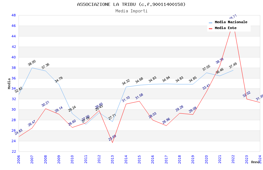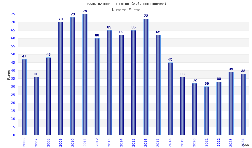 | Anno | Firme | Importi | Media | Naz. | Reg. | Prov. | Comu. |