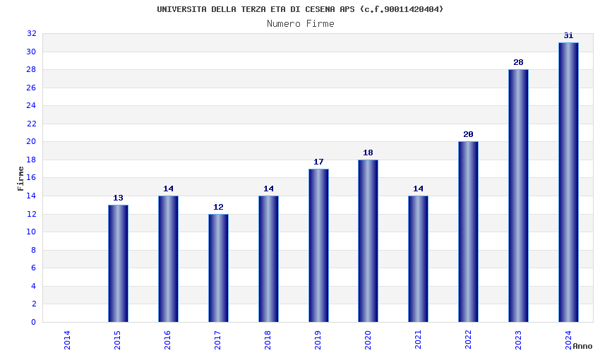 | Anno | Firme | Importi | Media | Naz. | Reg. | Prov. | Comu. |