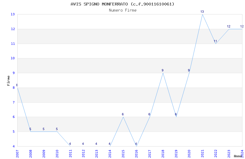 | 2021 | 13 | 332,39 | 25,57 | 53.253 | 4.708 | 449 | 1 |