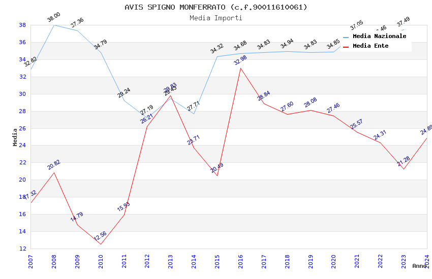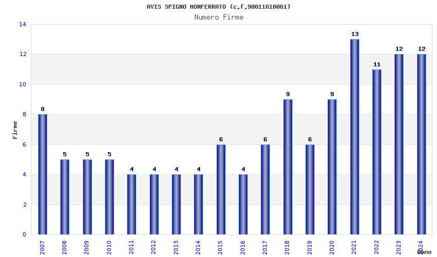 | Anno | Firme | Importi | Media | Naz. | Reg. | Prov. | Comu. |