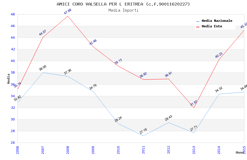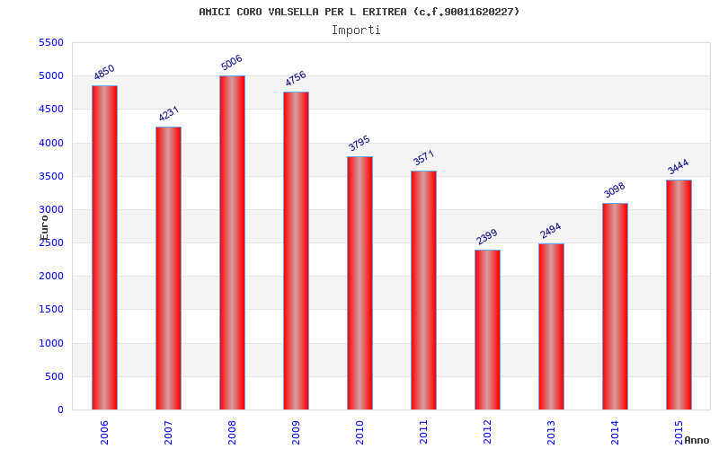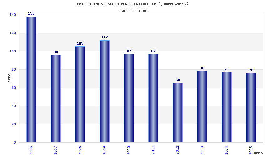 | Anno | Firme | Importi | Media | Naz. | Reg. | Prov. | Comu. |