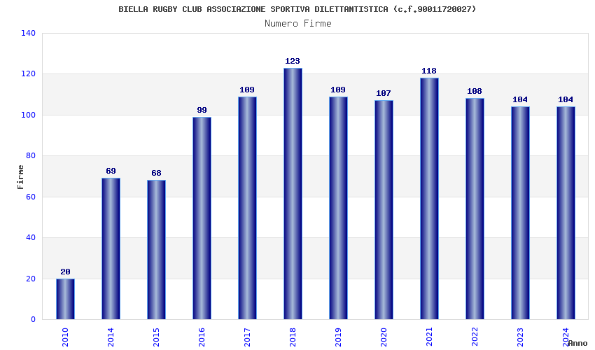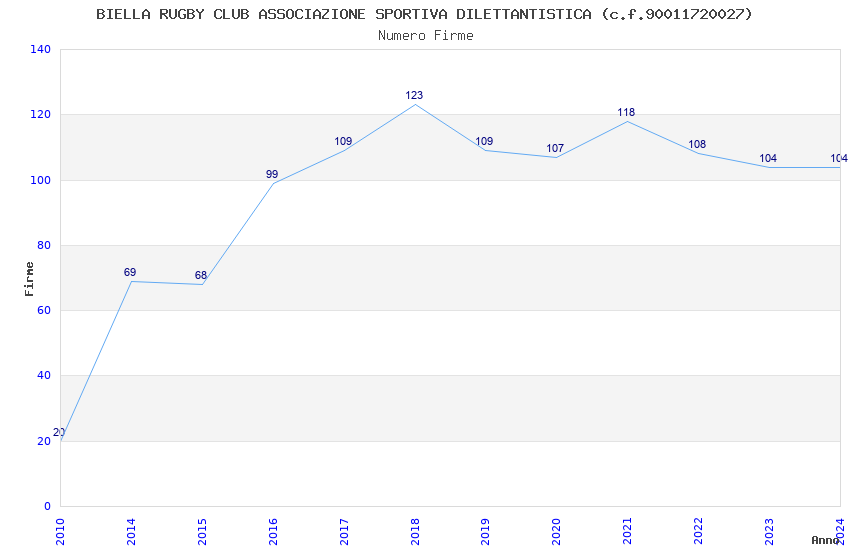 | 2023 | 104 | 5.418,65 | 52,10 | 9.949 | 664 | 26 | 17 |